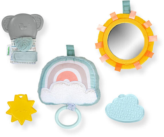 HU Description A baba első évének megélése örömteli, de kihívásokkal teli - és az Ingenuity Calm Springs Soothing Essentials ajándékkészlet mindent tartalmaz, amire szükséged lehet ahhoz, hogy az utazás még élvezetesebb legyen. Az újszülöttek számára kötelező darab, ez a csomag megnyugtatja a babát otthon vagy útközben. A készlet tartalmaz egy zenélő plüssjátékot, egy kesztyűt, egy napos tükröt és 2 BPA-mentes rágókát. Az ötrészes készlet háromféleképpen foglalkoztatja a baba érzékeit: a zenélő plüssjáték gyengéd hangokkal nyugtat meg, a rágóka kesztyű és a rágóka enyhülést hoz a fájós ínynek, a napostükör címkékkel pedig megnyugtató felfedezést kínál. A készlet a baba tapintási készségeit ösztönzi azáltal, hogy különböző textúrákban és anyagokban található alapvető segédeszközöket tartalmaz. Ez az ajándékkészlet újszülöttek és nagyobb gyermekek (és a stílus iránt érdeklődő szüleik) számára alkalmas a vonzó, semleges színeknek és a szuperaranyos mintáknak köszönhetően, amelyek kiegészítik a gyerekszoba dekorációját. Ez az elegáns készlet az Ingenuity boho-ihletésű Calm Springs kollekciójának része - tökéletes a babák és az otthoni környezet esztétikájához. **Szállító címe:** KIDS2 EUROPE BV 5 Keizersgracht 287, 1016 ED Amsterdam, Netherlands; +31 20 241 0934