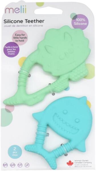 Melii Teethers, 2 db, Rágókák gyermekeknek, Nemcsak a gyermeket szórakoztató játék, hanem egyben segédeszköz is az íny masszírozására és a fogacskák növekedését kísérő fájdalom enyhítésére. A játékos megjelenésű Melii Teethers rágókát az apró babakezek is könnyedén megtartják. Tulajdonságok: segít enyhíteni a fogzás során jelentkező ínyfájdalmat a kicsi gyermekkezek is jól meg tudják fogni a rágóka könnyű az anyag harapásálló utazáshoz is megfelelő a finommotorikus készségek fejlesztése színes kivitel Anyaga: szilikon Használata: Higiéniai és biztonsági okokból javasoljuk, hogy minden használat előtt és után ellenőrizze és tisztítsa meg vízzel. Amennyiben a játék kopott, sérült vagy megrágott, cserélje ki egy újra.