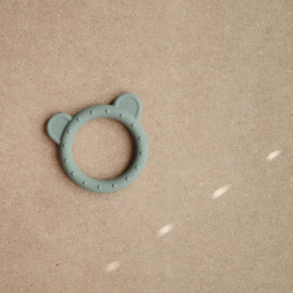 Édes dizájn, mesés színek A kedves mackó rágóka masszírozza a baba ínyét, enyhítve a fogzás fájdalmait. A kakukkfű színű kiegészítő élelmiszeripari szilikonból készül. Kialakításának köszönhetően használata biztonságos a kisgyermekek számára. CE-tanúsítvánnyal ellátott termék.