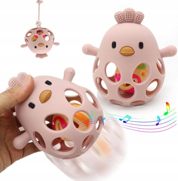 Szilikon rágóka csecsemőknek Érzékszervi játék Csirke csengővel (P8607)ALLEGRO